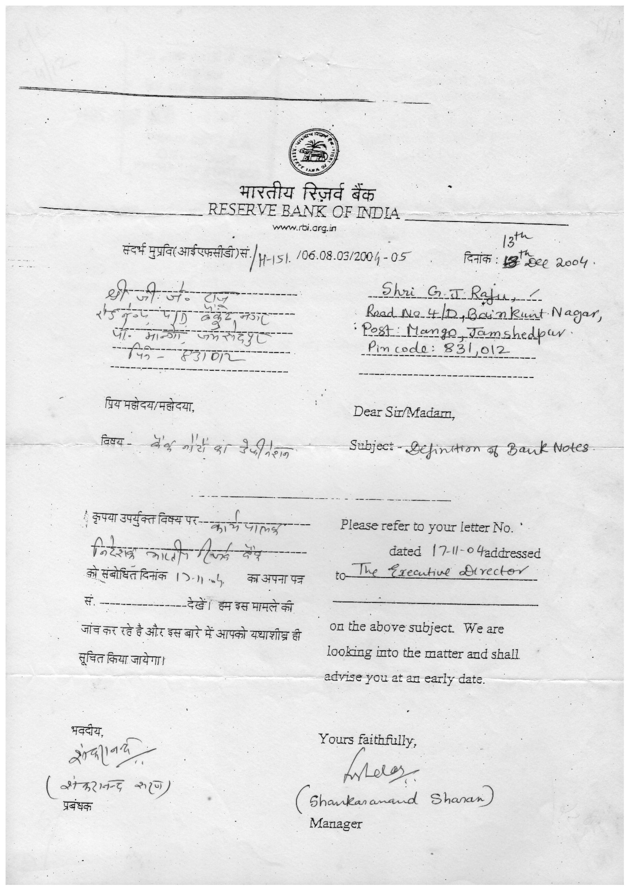 Reserve Bank of India (भारतीय रिजर्व बैंक)